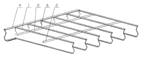 Description: 1, 2 load flat steel, square steel or twisted round three, cold-formed channel 4 hems, edging version 5, the through hole 6, flat gap